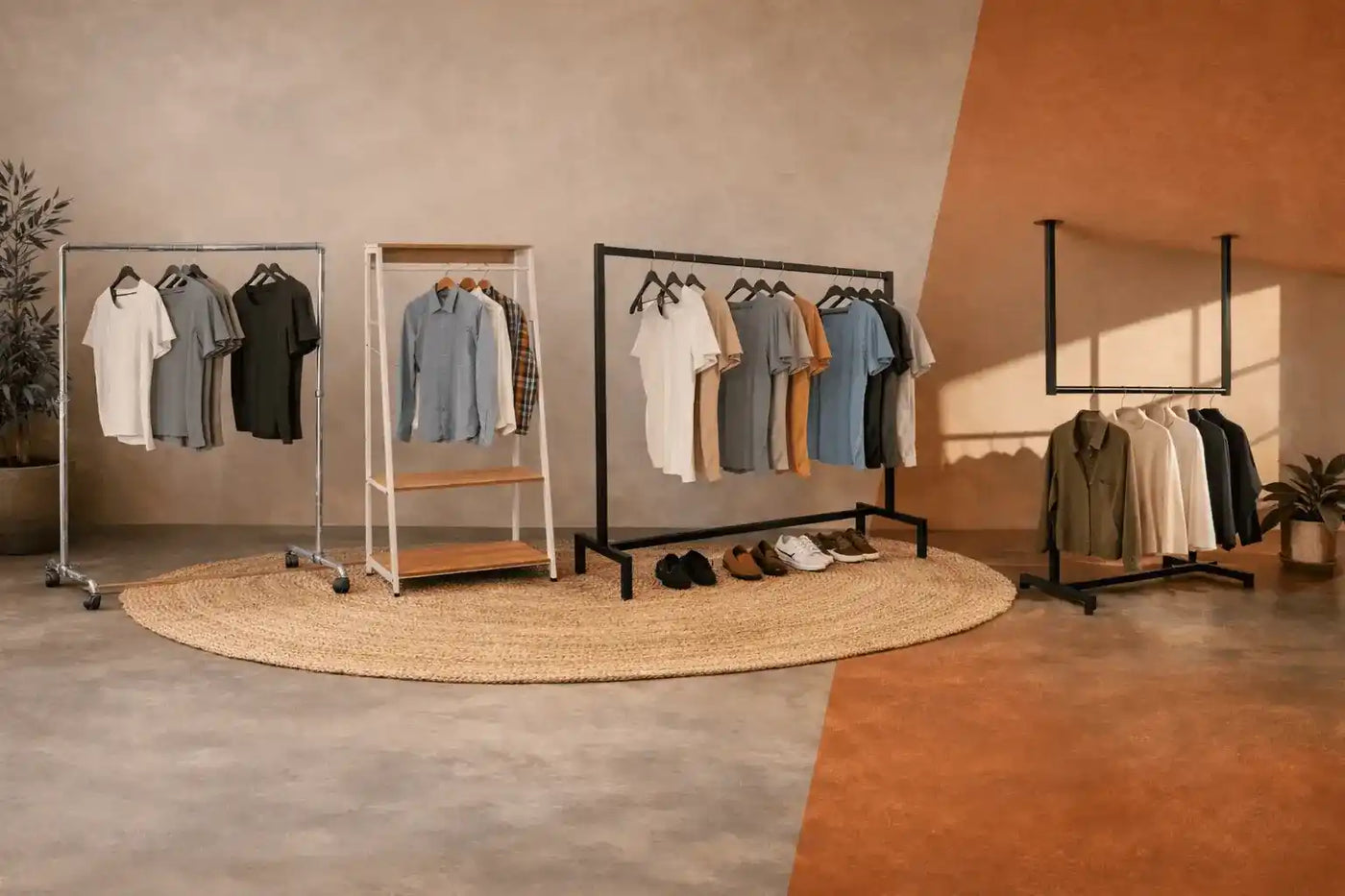 Laat je inspireren door deze zorgvuldig samengestelde Knuska look met kapstokken en kledingrekken die rust en structuur brengen in je interieur.