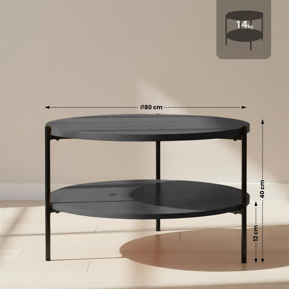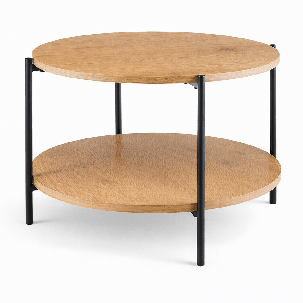 Salontafel Edduma Rond groot – 2-delige Set – Hout & Zwart Metaal – Modern - 80cm