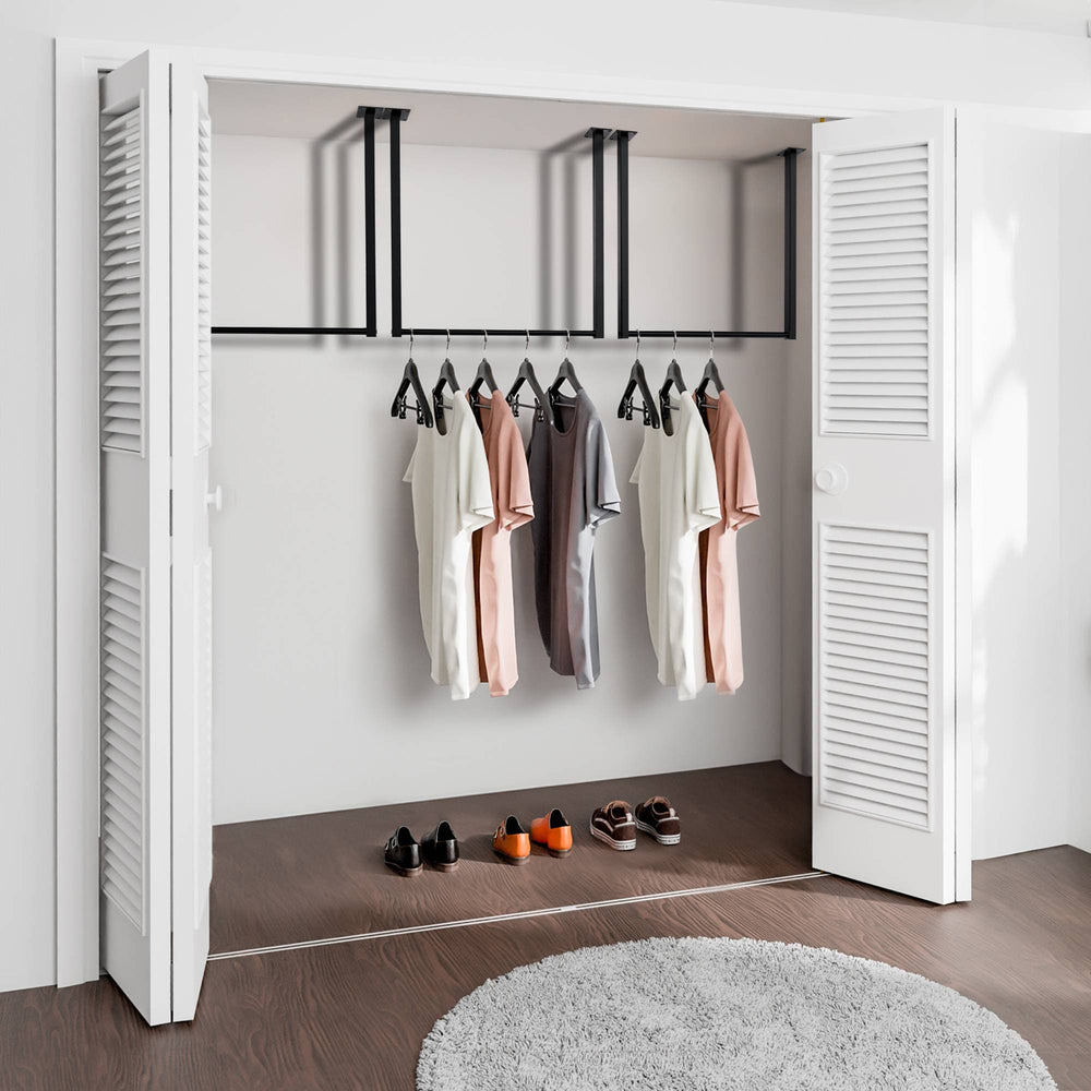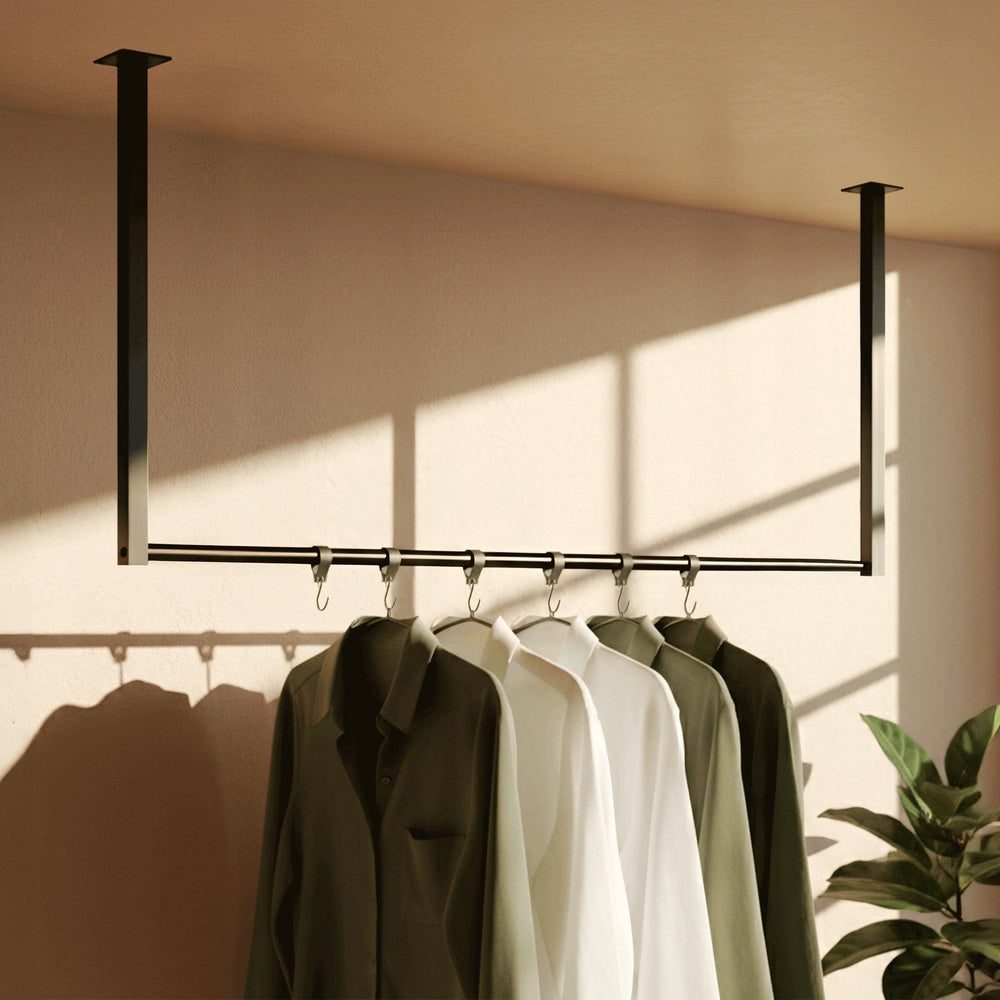 Deze garderobestang is geschikt voor plafondmontage, wat veel flexibiliteit biedt bij het inrichten van je ruimte. Zo kan de kledingstang perfect worden gecombineerd met een commode, dressoir, schoenenrek of sideboard. Ideaal voor zowel kleine ruimtes als moderne interieurs met een industriële of minimalistische uitstraling.